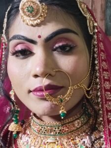 दुल्हन के लिए विशेष और आकर्षक ब्राइडल मेकअप, जो लंबे समय तक टिके और चेहरे की प्राकृतिक सुंदरता को निखारे।